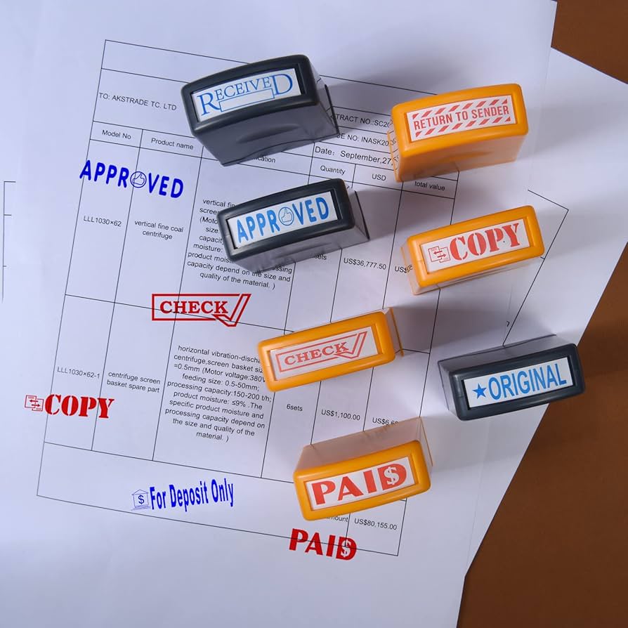 Upgrade your workplace efficiency with custom office stamps in the UAE. Whether you need a COPY stamp, APPROVED stamp, RECEIVED stamp, or PAID stamp, Stampman has you covered. Our pre-inked and self-inking stamps are perfect for everyday administrative tasks and document control in Dubai, Abu Dhabi, and beyond.